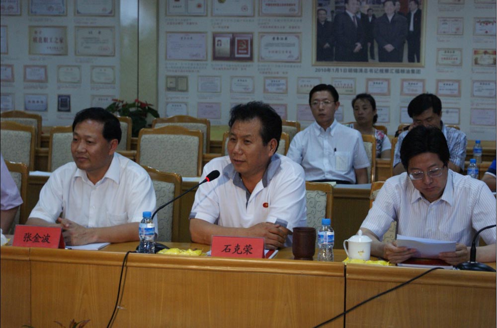 6月13日,河北省委常委、统战部长刘永瑞同志,在廊坊市委书记赵世洪、廊坊市政协副主席、市委统战部长孙殿高、三河市委书记李刚、三河市政府市长张金波的陪同下到汇福粮油集团就非公经济组织开展创先争优工作调研指导工作。汇福粮油集团董事长、党委书记石克荣汇报工作,并陪同刘部长一行参观了汇福灌装车间、汇福现代粮食物流。